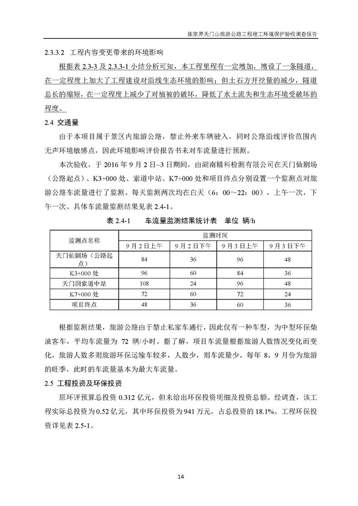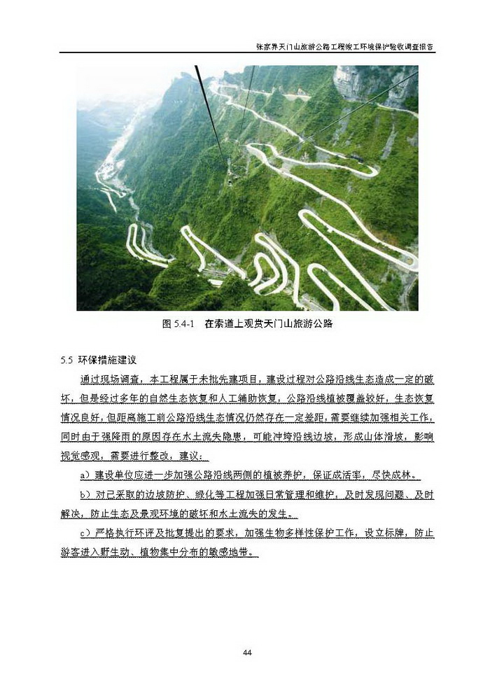 張家界天門山旅游公路工程駿工環(huán)保驗收調(diào)查報告